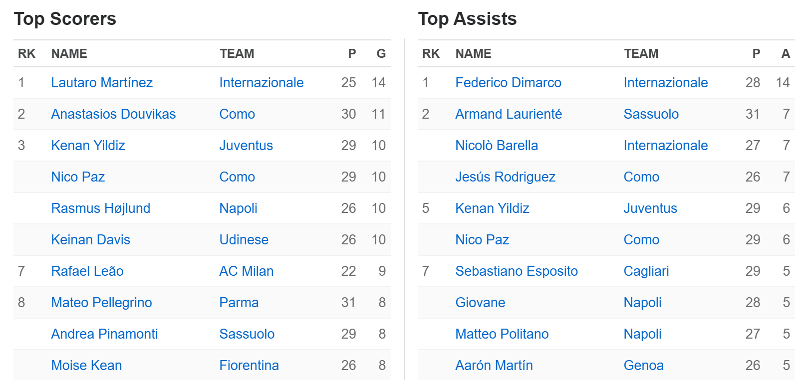 This is kinda funny to me, Lautaro was injured for a month and half, Dimarco was in bad form last month with 0 assist, but despite all that they are still on top of the chart with big gap. And they still try “blaming” Inter for Serie A being bad, I simply can’t understand