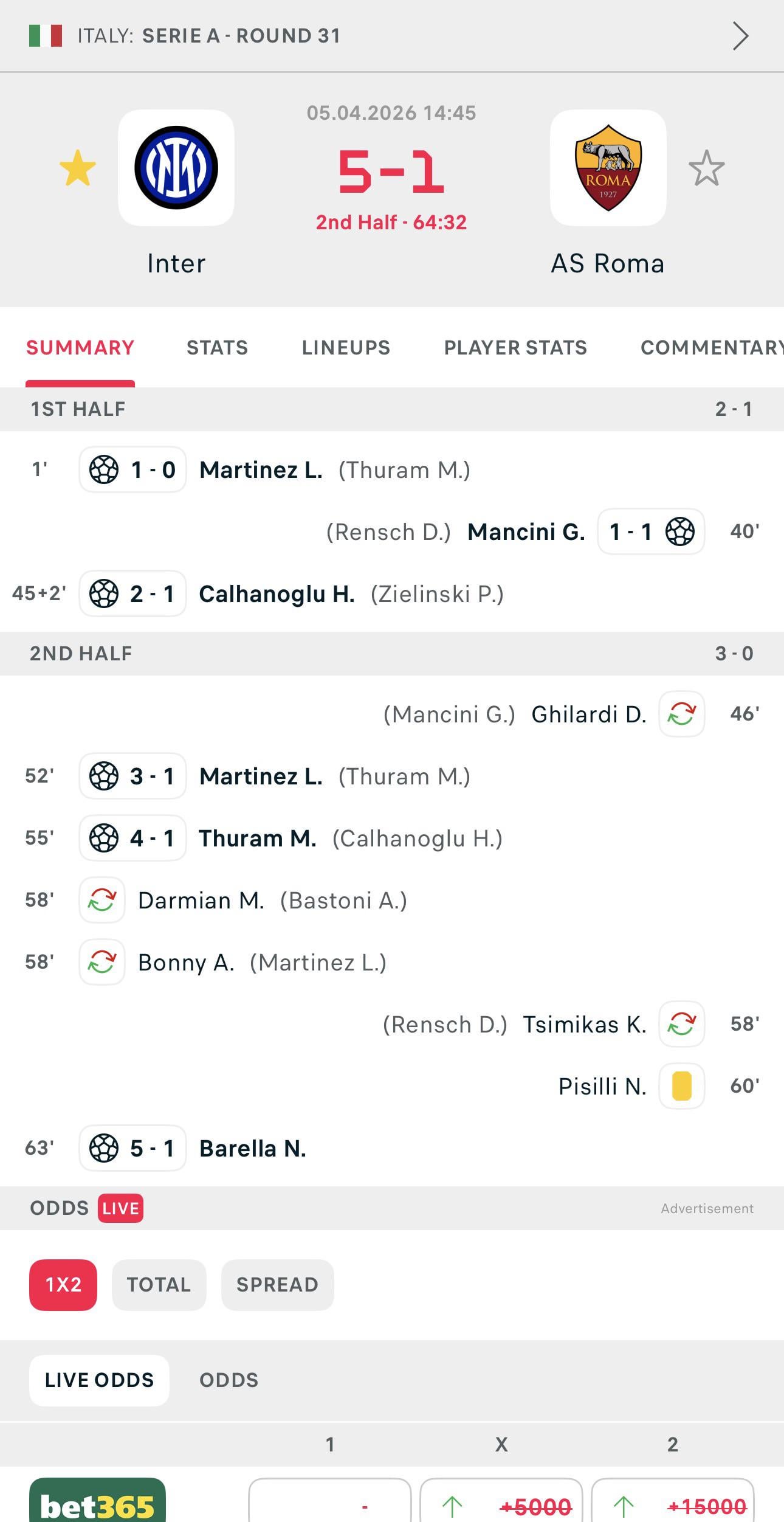 I had outside activity yesterday for easter so cannot watch the game live. Later afternoon once i remember about the game, i opened youtube to watch the recap / highliglight. But see ing the score was 5:2, i immediately closed youtube, turnednin TV to watch the replay game in paramount+.