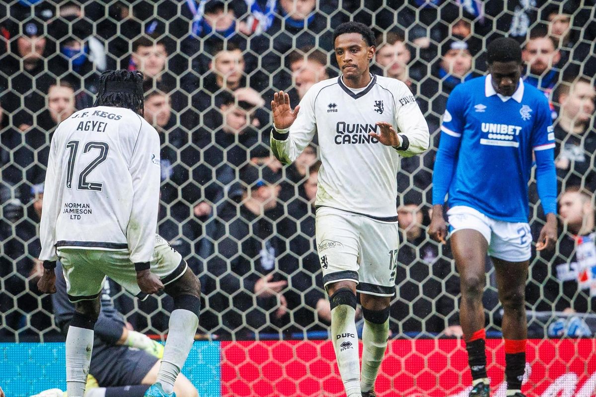 Dundee United’s Amar Fatah (right) celebrates after scoring at Ibrox(Image: SNS Group)