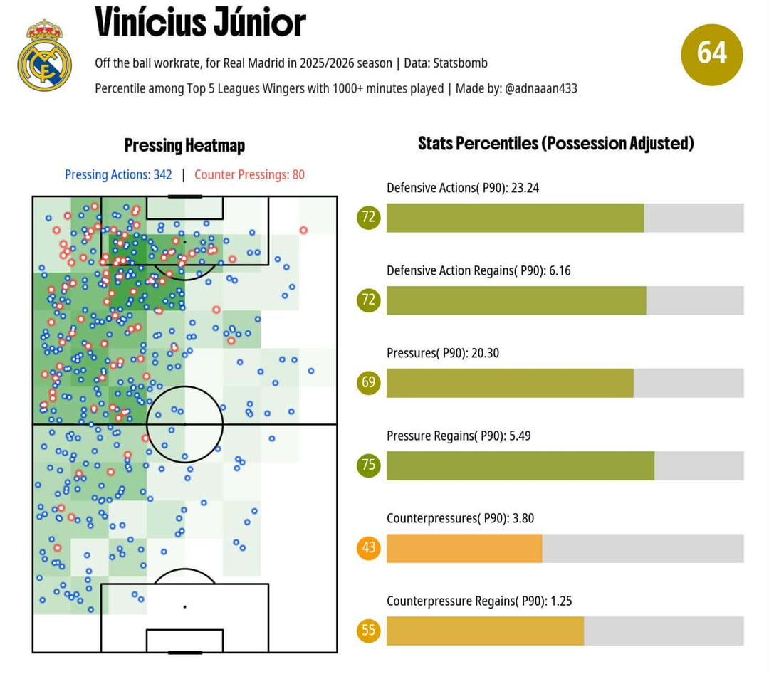 Vini’s one is the only one where it is ranked among all top 5 leagues and not just laliga like the rest, look at him vs yamal numbers