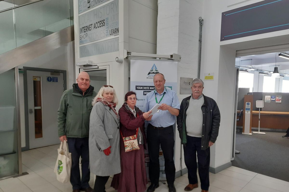 Wintersdale Road residents delivering the letters to HDC’s head of development management, Adrian Eastwood(Image: Melanie Wakley)