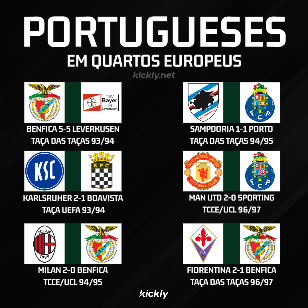 Share Facebook Twitter LinkedIn Pinterest Bluesky Threads Todas as Vezes que Clubes Portugueses Chegaram a Quartos-de-Final Europeus by CoachLag football Portugal Primeira Liga Primeira Liga Portuguesa Soccer