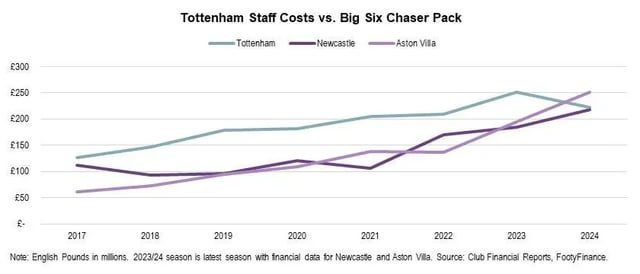 Tottenham’s focus on maximizing profitability has led to an underinvestment in a squad needed to win. Manager churn, roster turnover, and subsequent lack of on-field identity/performance are a result of this financial decision, not a cause of it. There is a clear gap between Spurs and the rest of the Big Six.