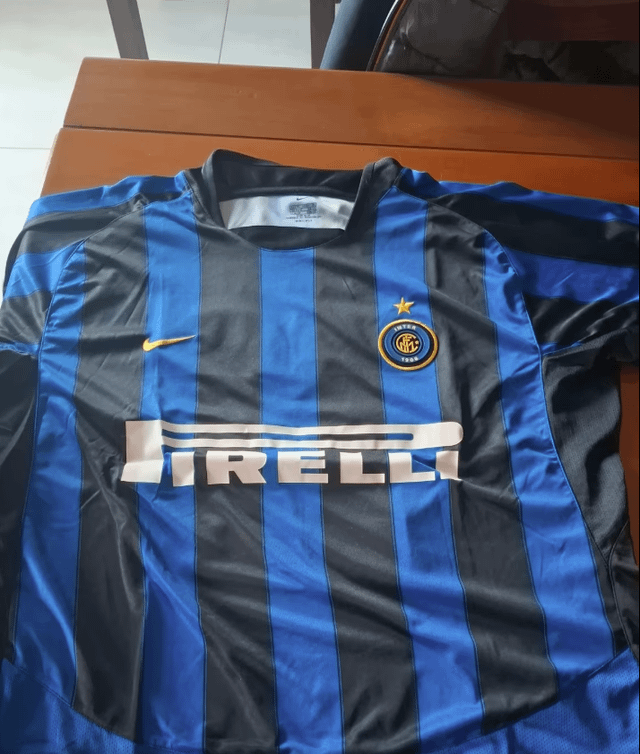 The symbol seems legit but not sure about "Made in bulgaria" and the inner part is seems should be blue… (see here https://www.footballkitarchive.com/inter-milan-2003-04-home-kit/2003/)