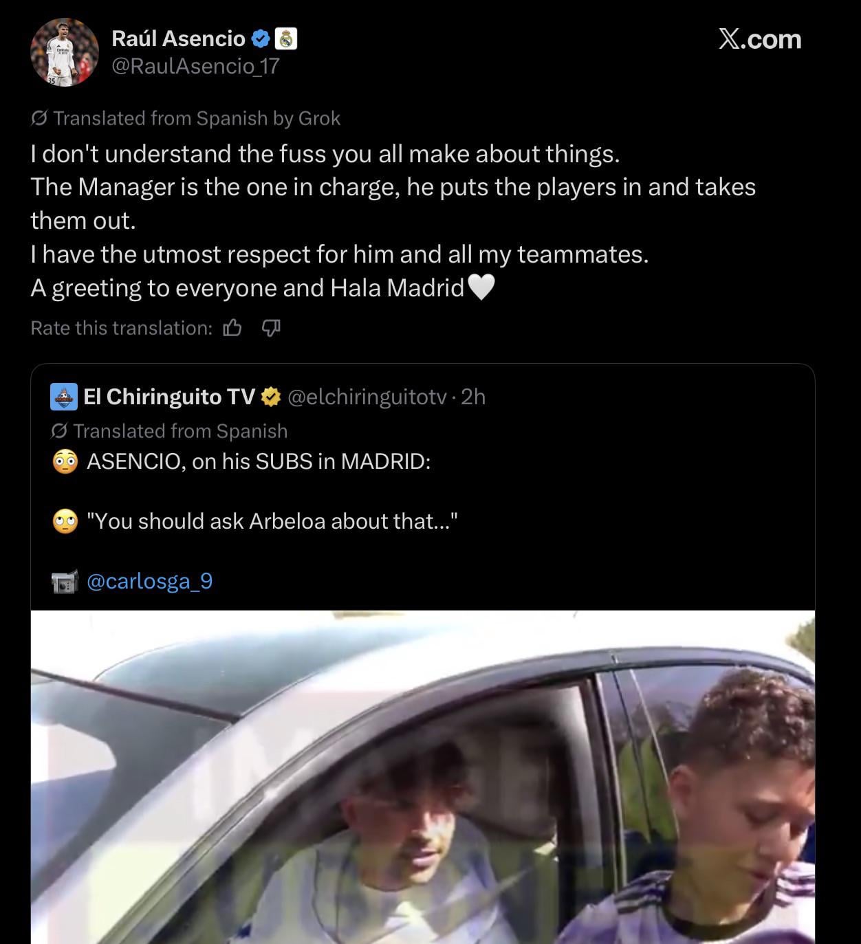 Spanish media recently posted about Asencio not being happy with Arbeloa about no playing time and had a confrontation with him