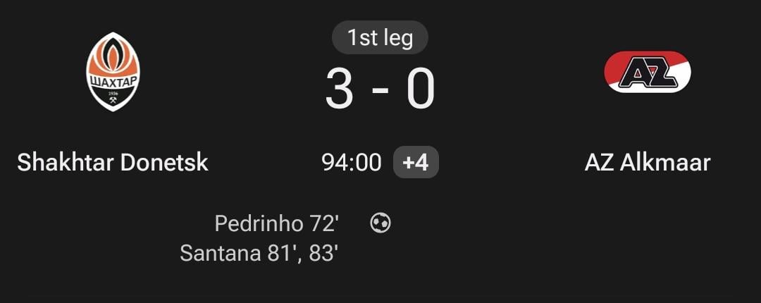 Nou ja als AZ toch niet meer gaat winnen hoop ik dat Shakhtar het lukt. Gun Oekraïne wel een succesje naast wat slagvelden in Kup’yansk en Zaporizhzhia
