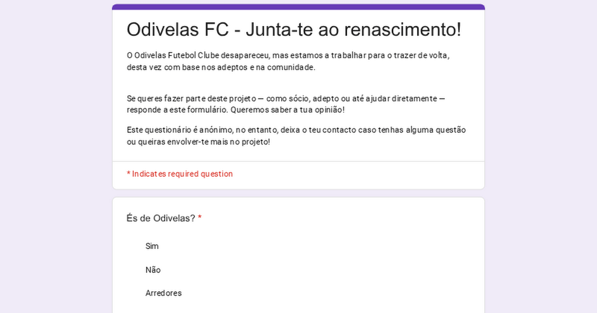 Estamos a reunir pessoas que querem fazer parte do renascimento do Odivelas Futebol Clube.