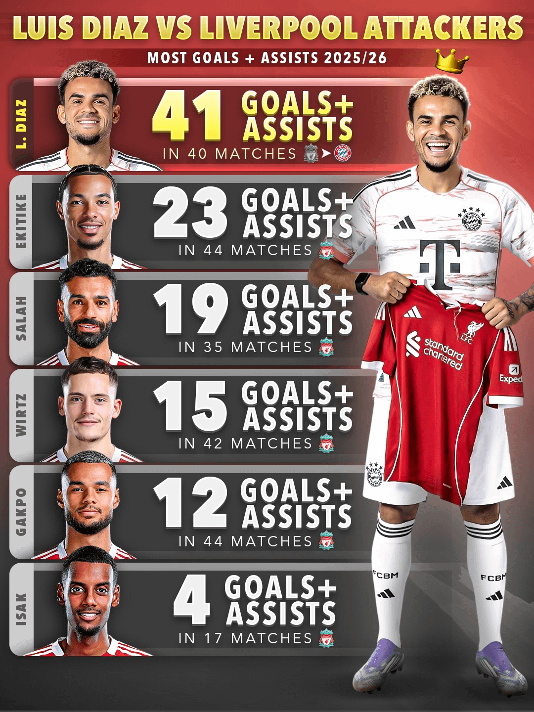 If Wirtz came to Bayern and Diaz stayed, their stats would be switched.