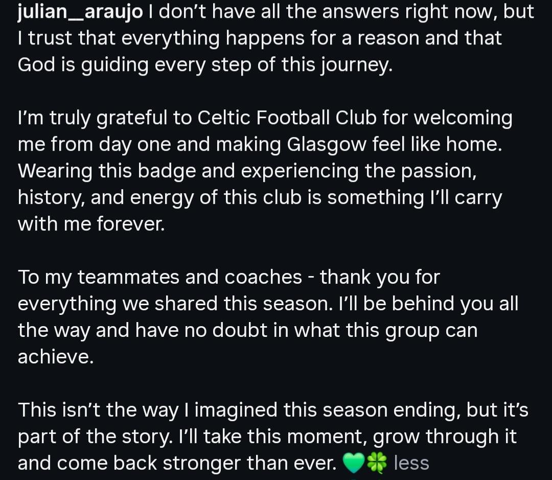 Getting a bit of joy out of Araujo this season is like picking through the rubble of your house that’s been destroyed by a fire and finding a cherished photo. But then a fireman snatches it off you and fucks it right in the bin and sets that on fire as well.
