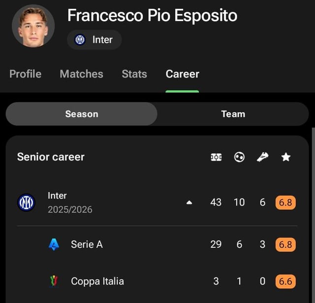 I think both Pio and Bonny are better then Sebastiano for now and adding another young unexperienced forward to the squad ain’t prefarable imo. Atm its good with Lautaro, Thuram, Pio and Bonny. If we could get hands on a real speedy forward/striker (attributes like Don Malen brings to the table for Roma) then it would make some sense adding another name or let that speedster take the fourth spot from Bonny.