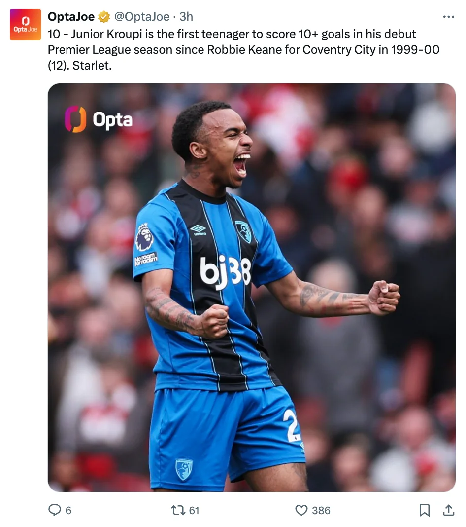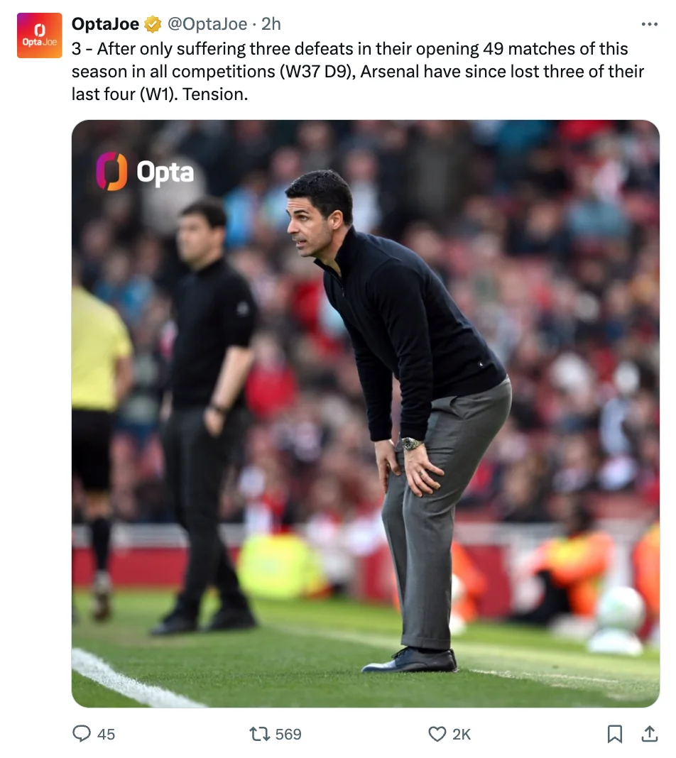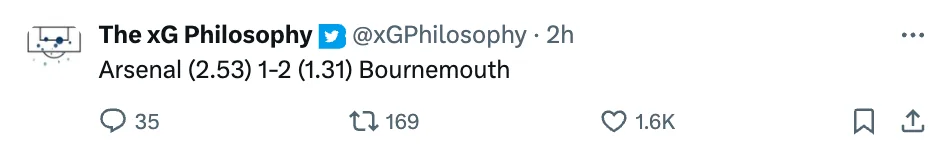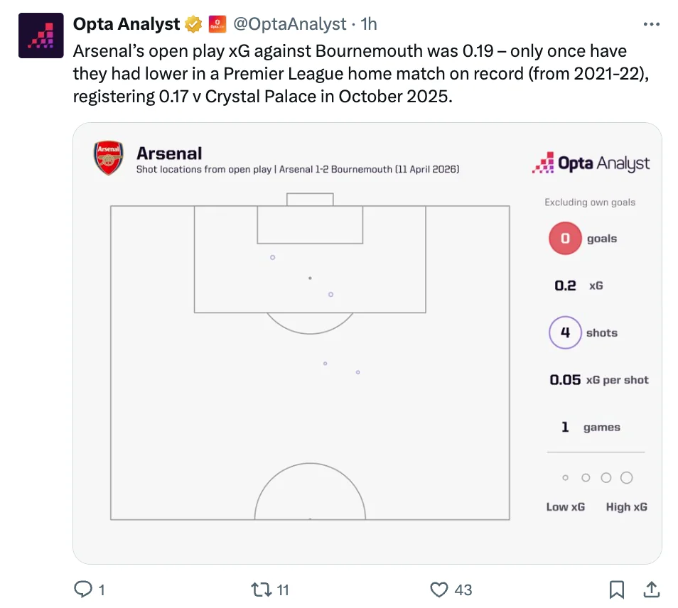 It was an opportunity missed today to take the initiative. Full credit to Bournemouth, they played with a lot of intensity, controlled the game in large periods, and caused Arsenal a few problems. There’s still a long way to go, there are still a few things to happen, but Arsenal can go to Man City next week, and the focus needs to be on them. We highlighted it before the game. Bournemouth are on the longest unbeaten run in Europe at the moment. To do that in the Premier League today, they’re a really good team with a great manager who has installed some great habits. Quite a young team as well, full credit goes to them. It was a great goal [from Alex Scott].