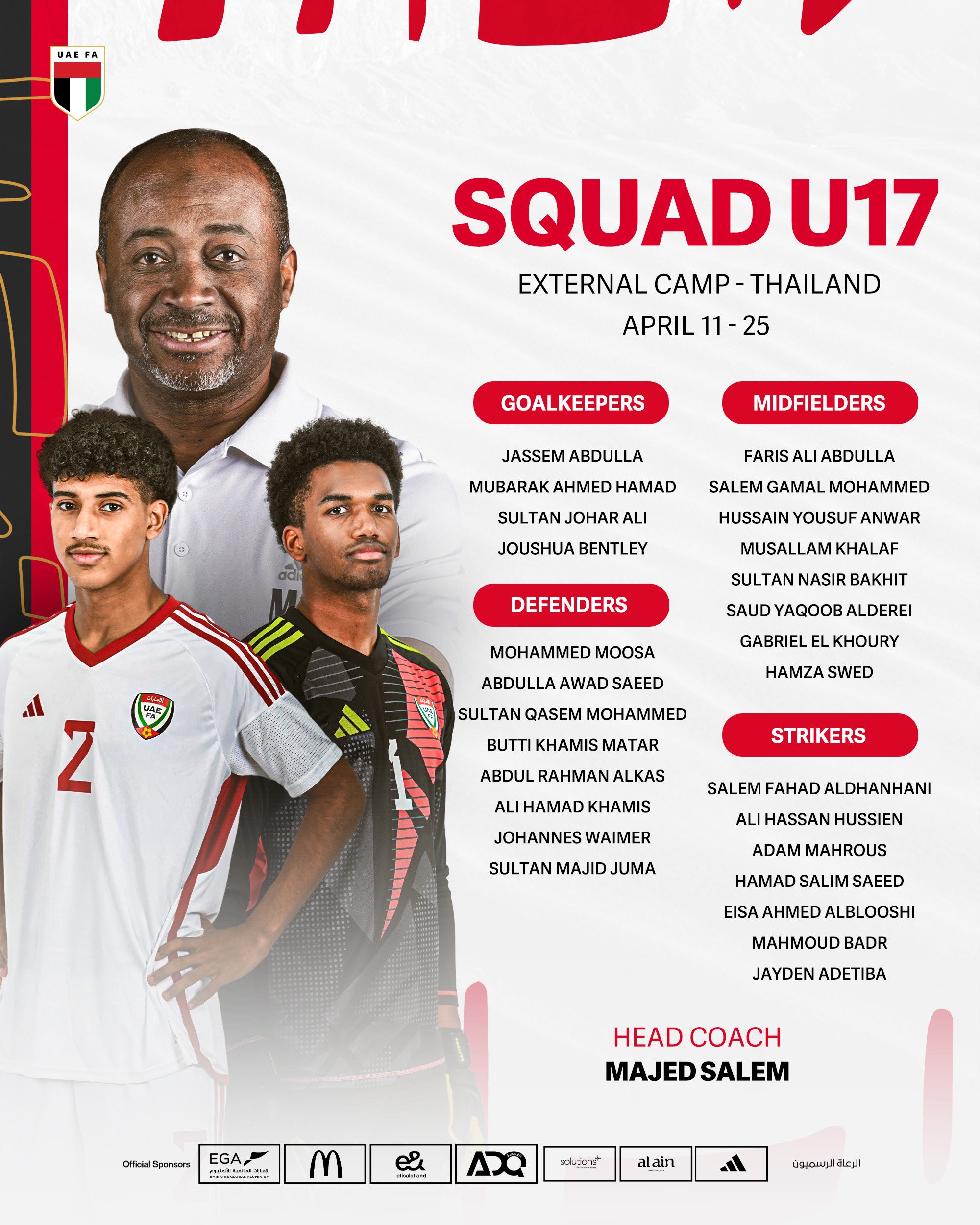 Town academy duo Jayden Adetiba and Josh Bentley have been named in a UAE U17s squad for a training camp in Thailand which runs from this weekend until April 25th.