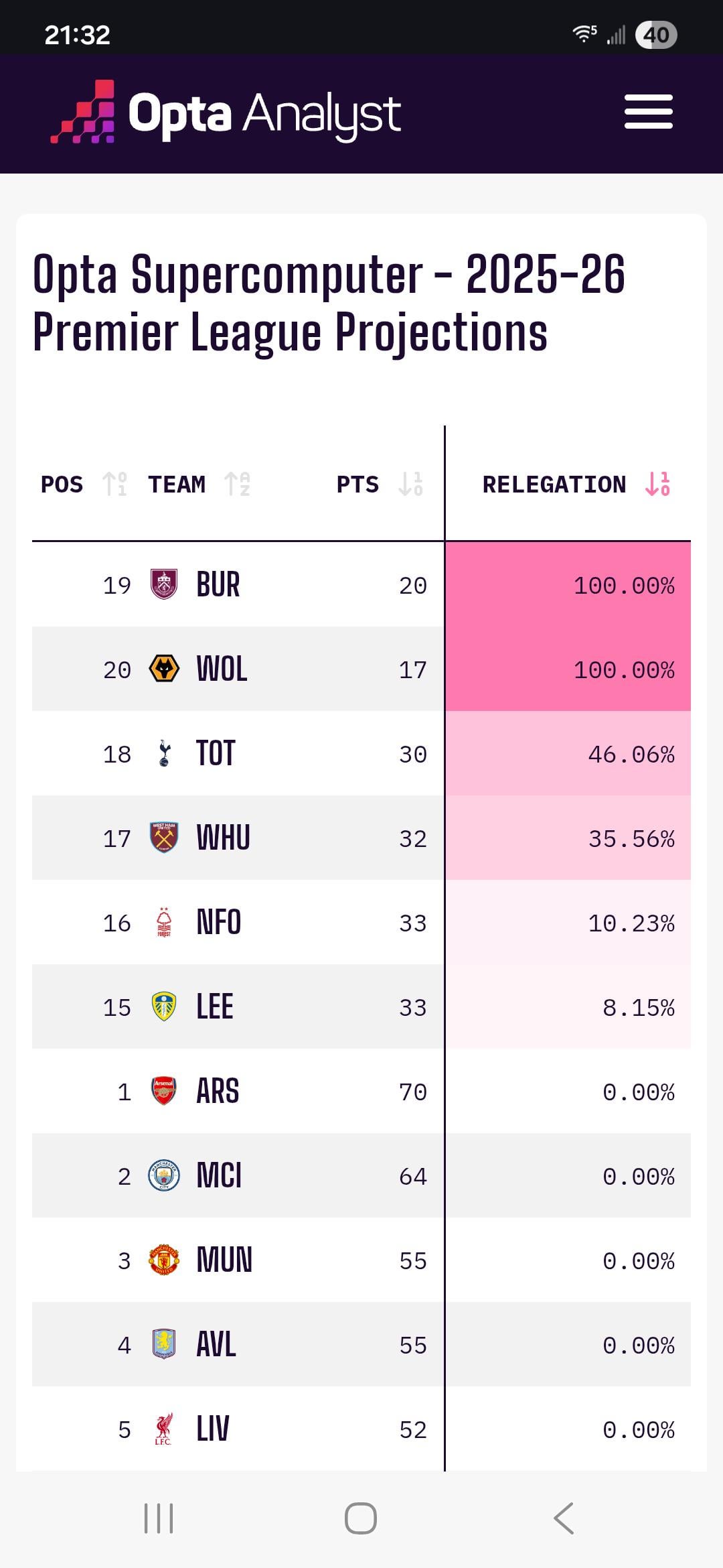 How can Wolves and Burnley have 100% chance of going down when that’s literally and numerically not the case.