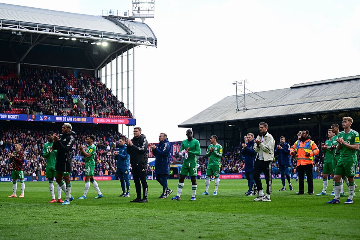Newcastle players and staff clap the fans following the Premier League match against Crystal Palace at Selhurst Park