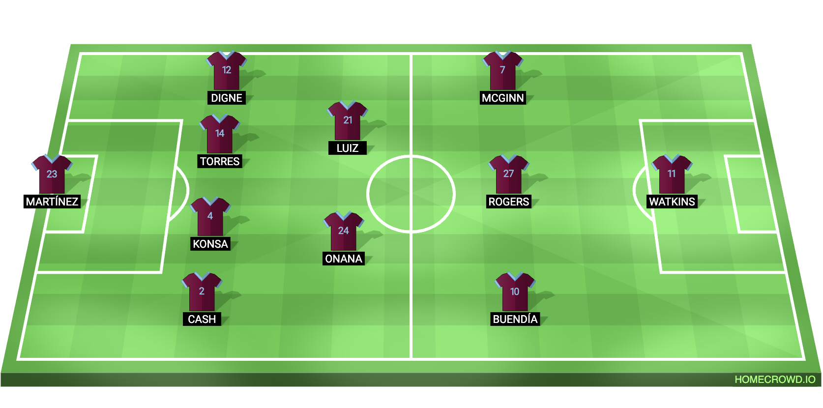 Probable Lineup (4-2-3-1): Martinez; Cash, Konsa, Torres, Digne; Onana, Luiz; McGinn, Rogers, Buendia; Watkins