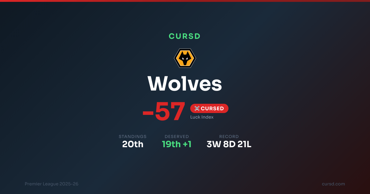 The most unlucky thing about Wolves is that Fosun is still in charge. Fosun have cursd us. Fosun need to sell up and leave.