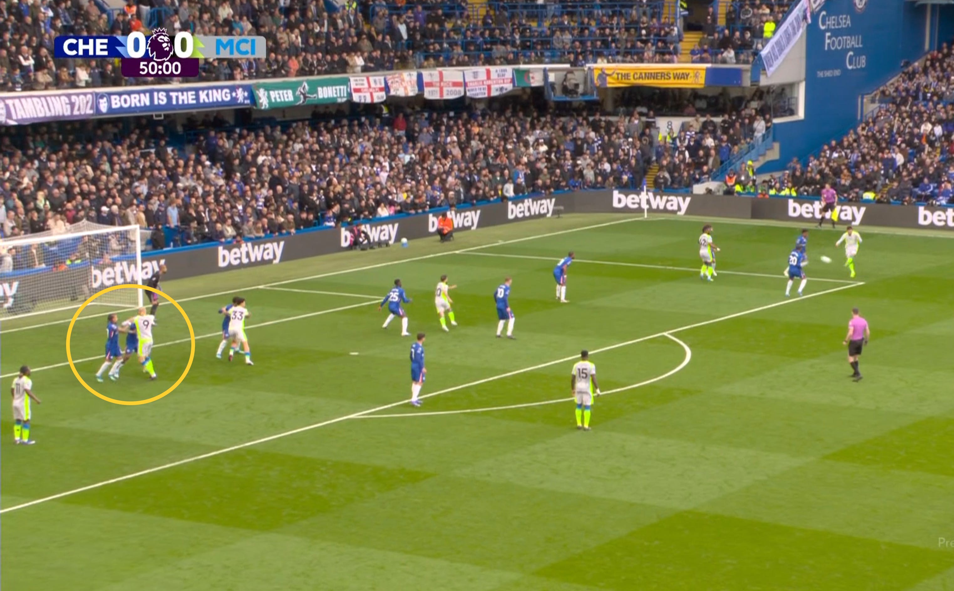 For the first goal, Cherki assisted O’Riley. Credit also to Haaland — a good answer to the question of what he does in big games: exactly what he always does. He occupies defenders and creates space. In that moment, two players were marking Haaland, leaving the 180 cm Santos to contest an aerial duel with the 193 cm O’Riley.