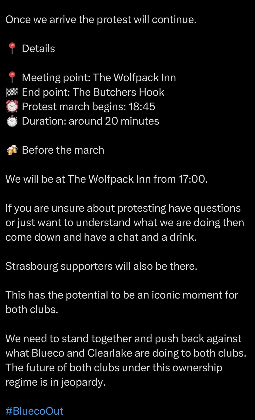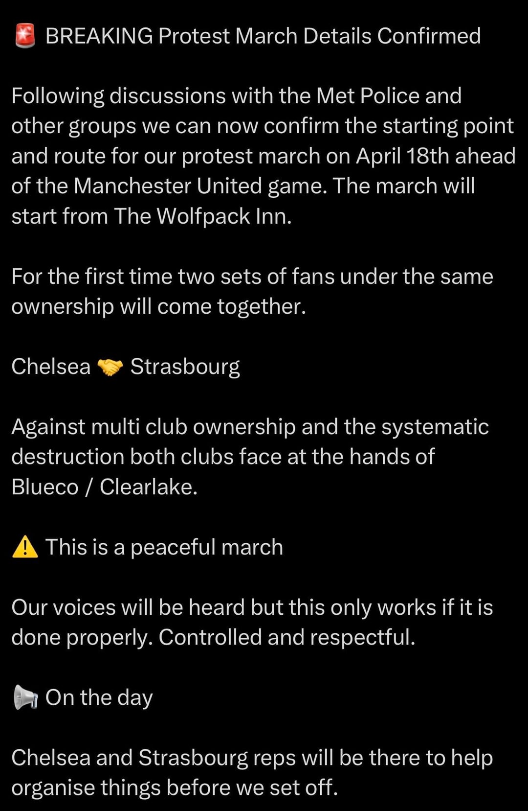 YOU GO OUT AND BE AS RUTHLESS AS POSSIBLE, FIGHT FOR THE CLUB! AND KEEP THE SAME ENERGY FOR FUTURE PROTESTS REGARDLESS OF RESULTS!