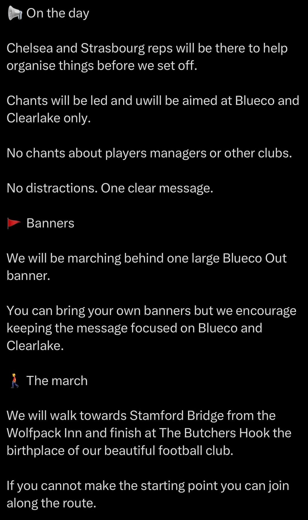 #Chants will be led and will be aimed at Blueco and Clearlake only.