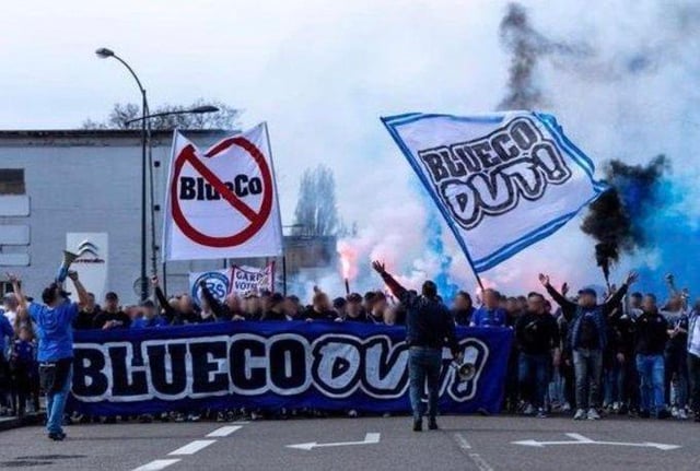 The only real way to protest is to not show up to games. Empty stadium with a giant “Fuck BlueCo” flag on the seats.