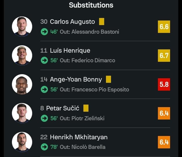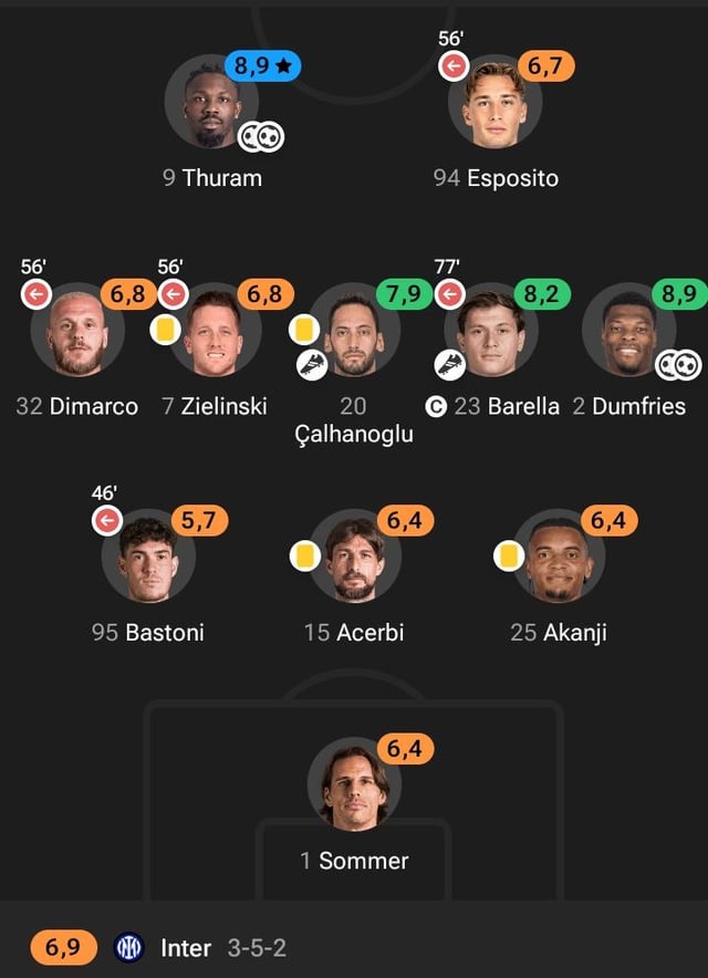 Akanji got an assist. No way Pio is 6.5, Acerbi should be the lowest along with Dimarco. Sommer shouldn’t be so high either.