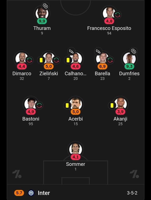 codenamederp on April 12, 2026 8:56 pm I don’t even know on what basis are some of these. Akanji got an assist. No way Pio is 6.5, Acerbi should be the lowest along with Dimarco. Sommer shouldn’t be so high either. And how is Hakan higher than Barella?
