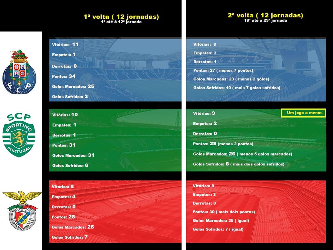 FCP – 1ª volta vs 2ª volta ( 12 jornadas):