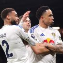 Noah Okafor struck twice inside the opening 30 minutes to spark wild scenes among Leeds’ travelling fans before Lisandro Martínez was sent off 11 minutes into the second period after a VAR intervention for tugging on Dominic Calvert-Lewin‘s hair.