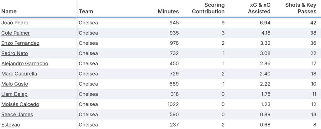Enzo’s 3.32 xG & xG assisted total notably ranks third among all Chelsea players under Rosenior: