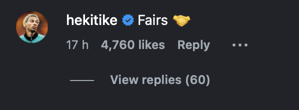 Amongst those congratulating him in the comments was Liverpool star Hugo Ekitike, commenting with a simple message: