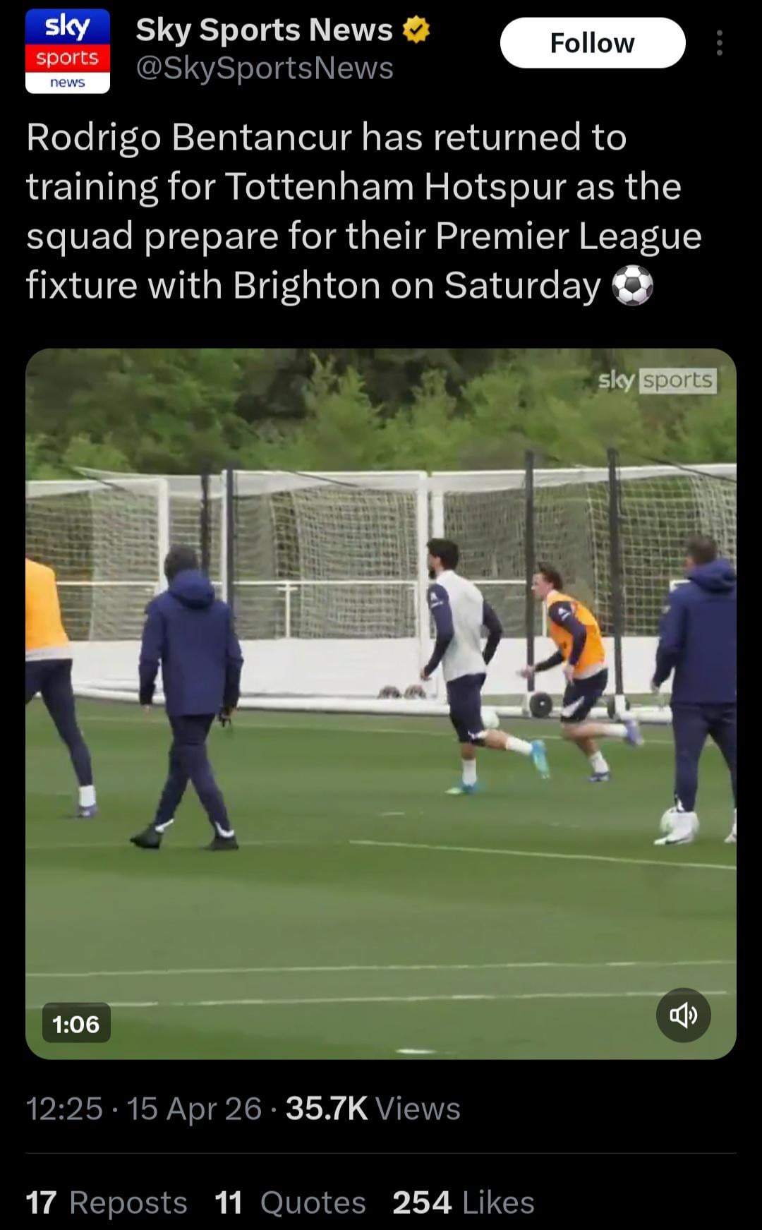 Get ready for the “Bentancur has suffered a setback” post in 3… 2… 1…