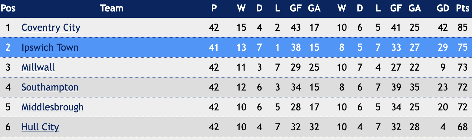 The Blues, who still have a game in hand on everyone else, remain second, two points ahead of Millwall in third, while Southampton beat Blackburn 3-0 at St Mary’s to move into fourth and into contention for automatic promotion for the first time, ahead of Middlesbrough, now down to fifth, on goal difference.