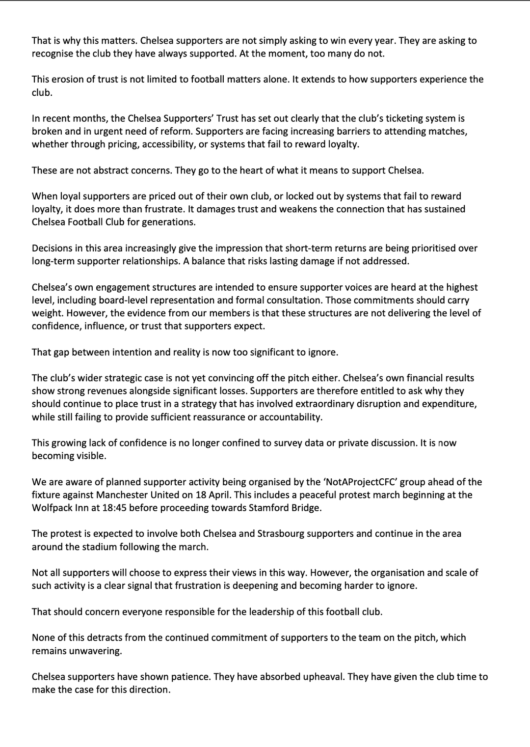 I truly appreciate the time/energy the Trust took in writing this open letter, putting pen to thoughts many of us share. Quite a shame that no one that matters in the club hierarchy will likely read it.