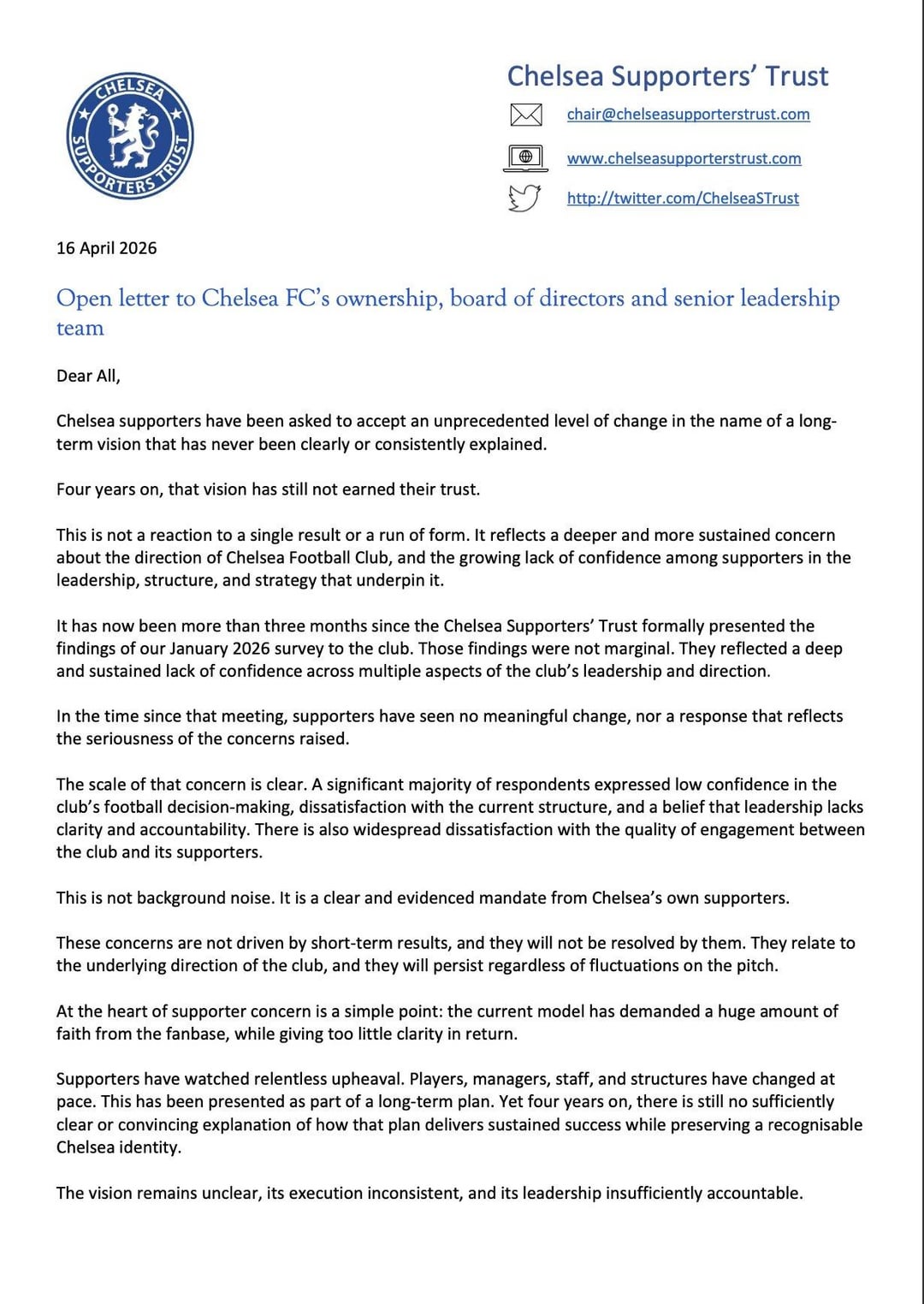 Let the people in charge do their things…the Chelsea Supporters Trust should stick to attending matches or choose a new team.