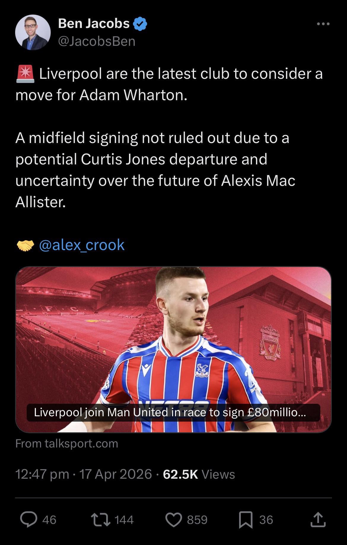 Wharton sounds fine, then you realize what a Wharton-Gravenberch looks like defensively/going backwards. Does Wharton help our ball progression issues? Probably. But heās injury prone and neither he nor Gravenberch can track runners. Have everyone liked our midfield getting run through every game? With Wharton and Gravenberch this gets worse. And no, Gravenberch isnāt going anywhere because he just got the big extension.