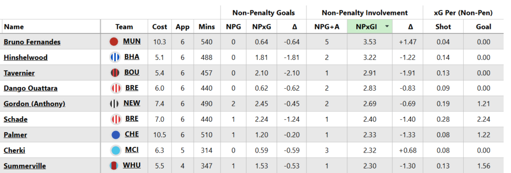 In fact, he’s even second among all FPL midfielders for non-penalty xGI over the last six Gameweeks:
