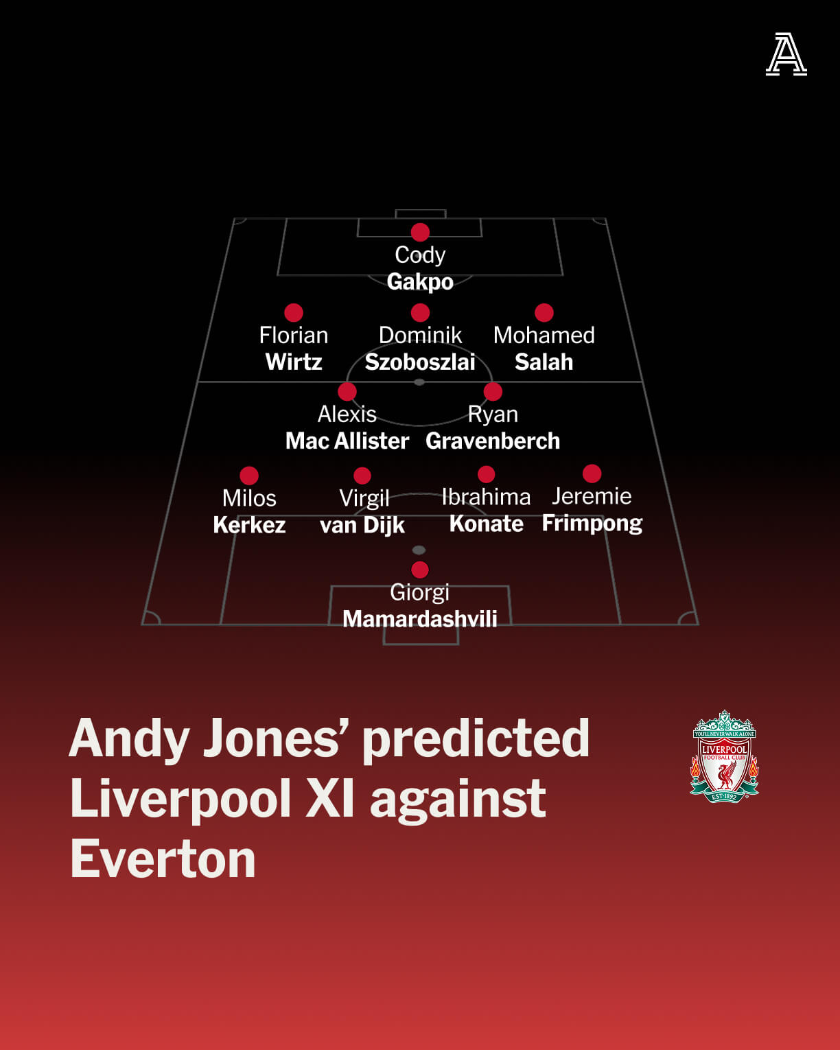 The obvious answer is Mohamed Salah. The 33-year-old will be keen to leave his mark on his final Merseyside derby, and there will be a determination to score at Everton’s new stadium too.