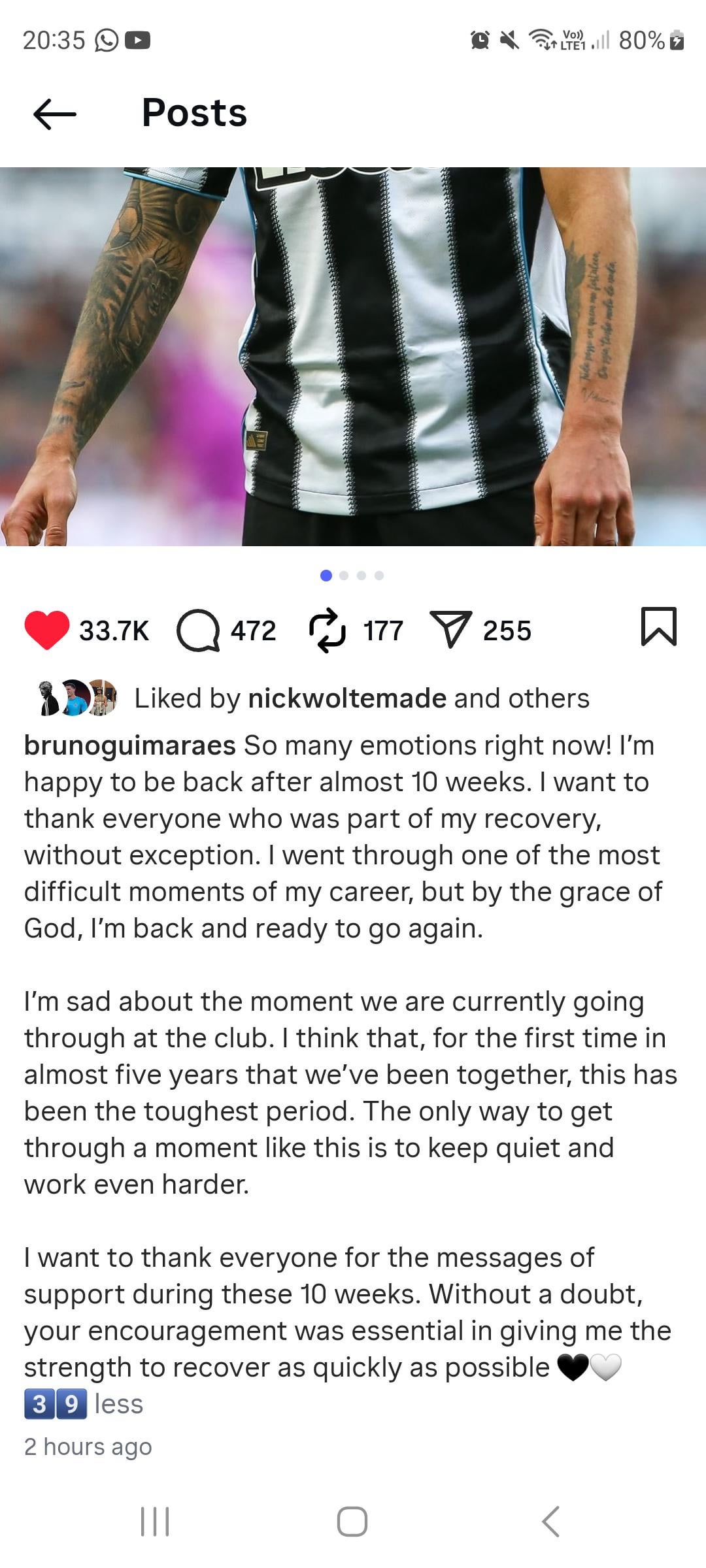 2. Bruno really is holding the team together, emotionally and on the pitch. Whatever happens in the summer I hope he stays.