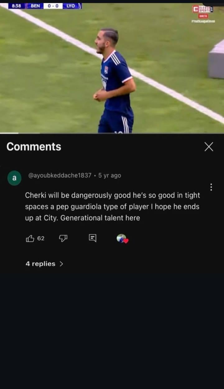 This is probably the only prediction about cherki that aged well. The media narrative had me disappointed for missing out on wirtz😭😭