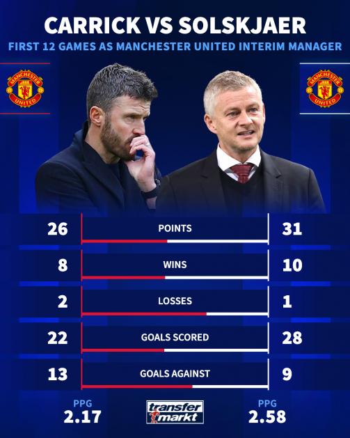 Michael Carrick and Ole Gunnar Solskjaer’s Man United starts examined