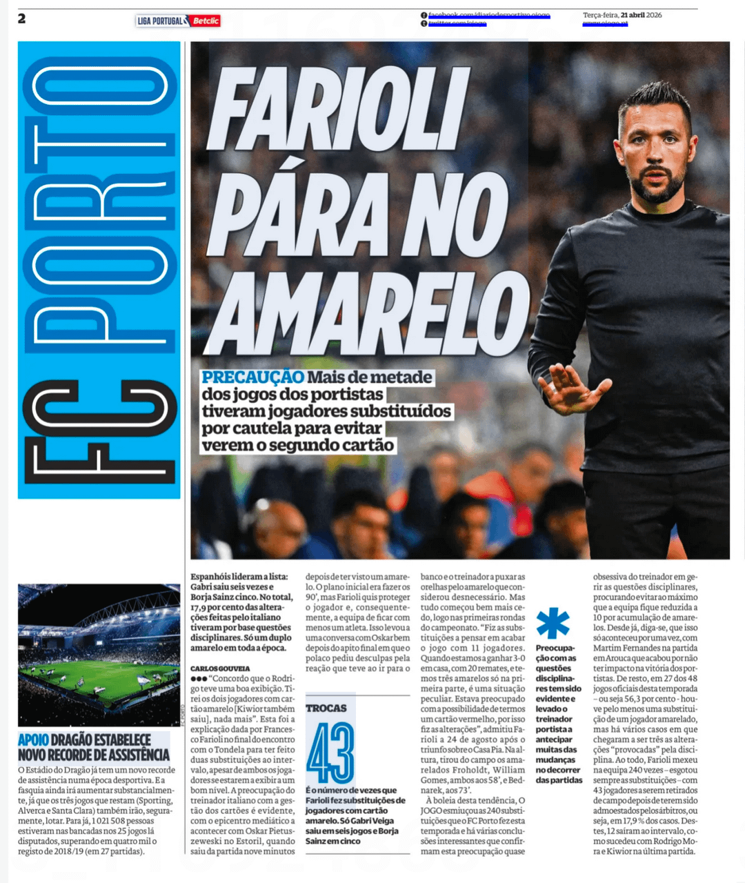 3. Claro que ele tem medo do duplo amarelo! Nós vimos o que aconteceu com o Nottingham Forest! Ainda por cima agora que não tem um ponta-de-lança matador, jogar com 10 dá no que se viu (eu sei que também houve azar com as bolas nos ferros, mas nós queríamos o resultado e não a vitória moral)