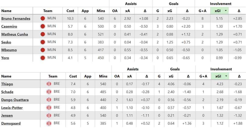Over their last six Gameweeks, these are both sides’ best players for expected goal involvement (xGI):
