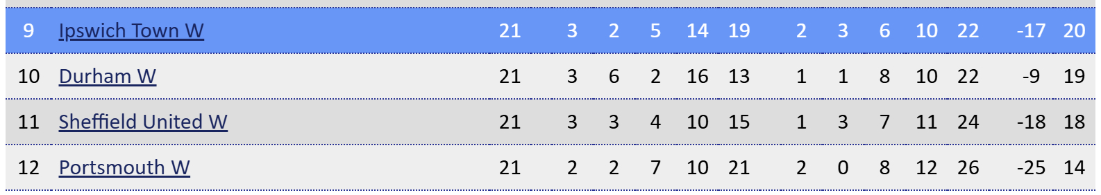 Blues manager David Wright, who was deservedly handed the role on a permanent basis this week, made one change from the team that had thumped Sheffield United 4-1 at home in midweek with Lysianne Proulx replacing Natalia Negri in goal, Town’s regular stopper instead named on the bench.