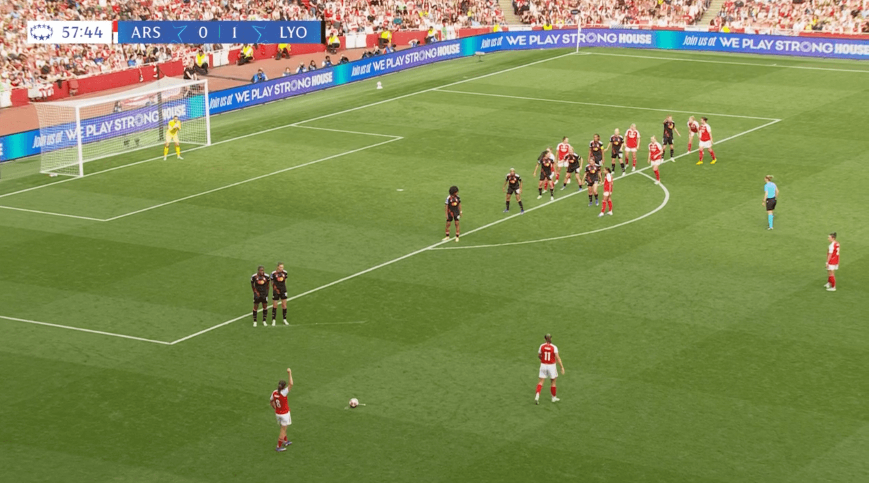 But then came the free kick. There’s the same pattern here. Caldentey again raised her right arm and sidefooted a ball into space at the near post.