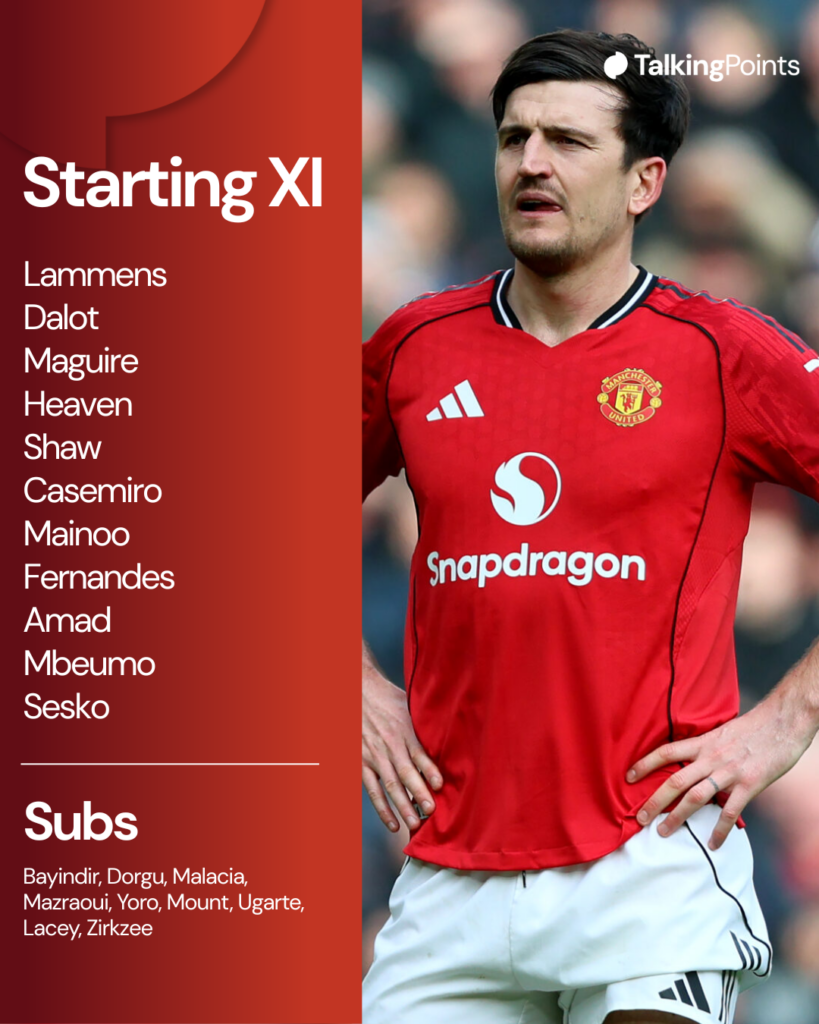In midfield, the partnership of Kobbie Mainoo and Casemiro has been kept intact, with ever-present captain Bruno Fernandes ahead of them in an attacking role.