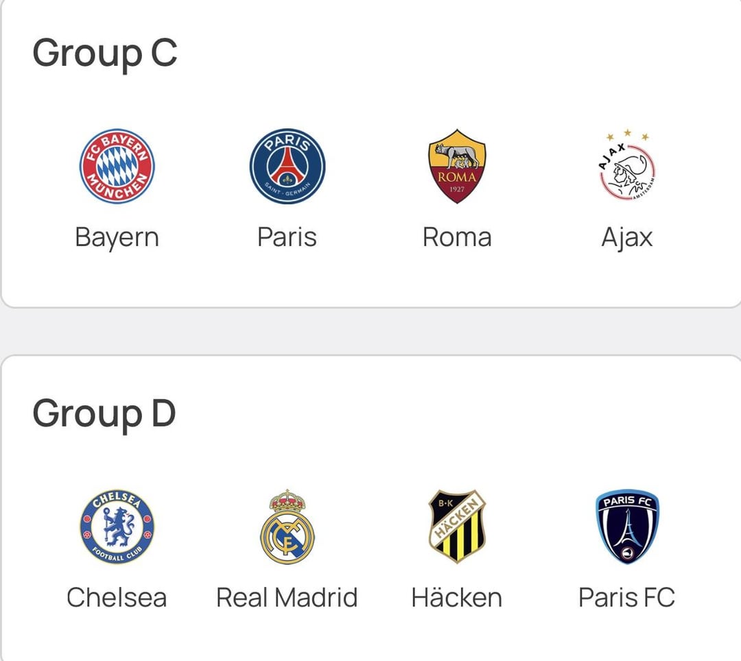 Groups C & D are much more stacked. Poor Ajax have their work cut out in their first UWCL group stage.
