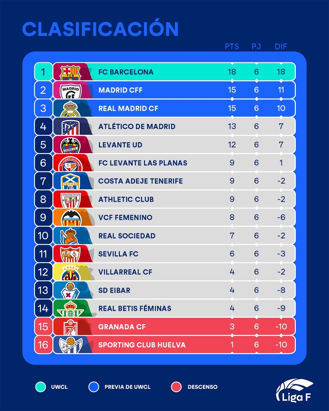 Share Facebook Twitter LinkedIn Pinterest Bluesky Threads 📊📈 Clasificación y resultados tras la Jornada 6⃣ de Liga F#LigaF #VamosGanando pic.twitter.com/WRn4yYILIz — Liga F (@LigaF_oficial) October 22, 2023 by lucidreamerinthezone women's football women's soccer