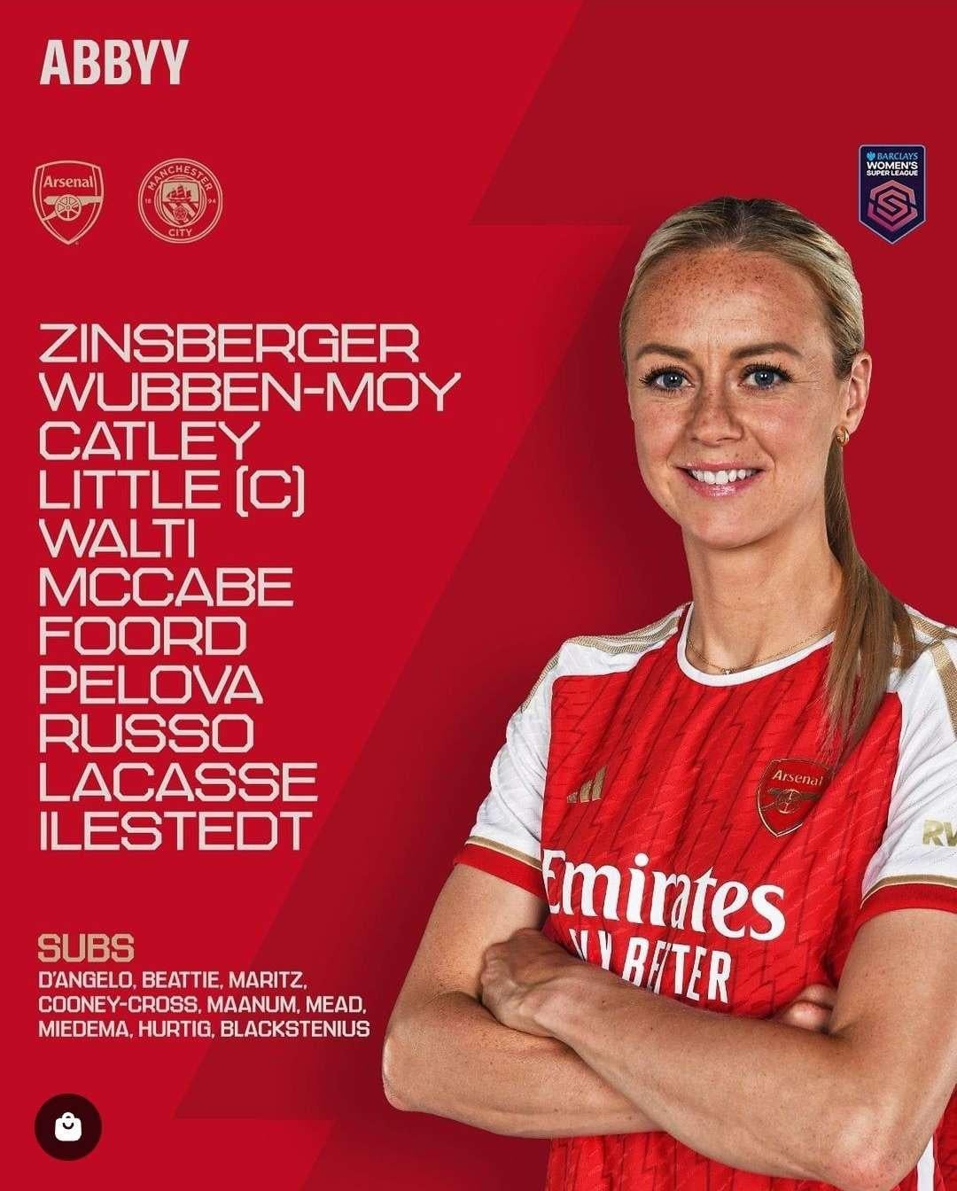 Share Facebook Twitter LinkedIn Pinterest Bluesky Threads Arsenal v Manchester City Lineup. by NeymarJr19 women's football women's soccer