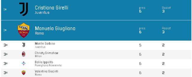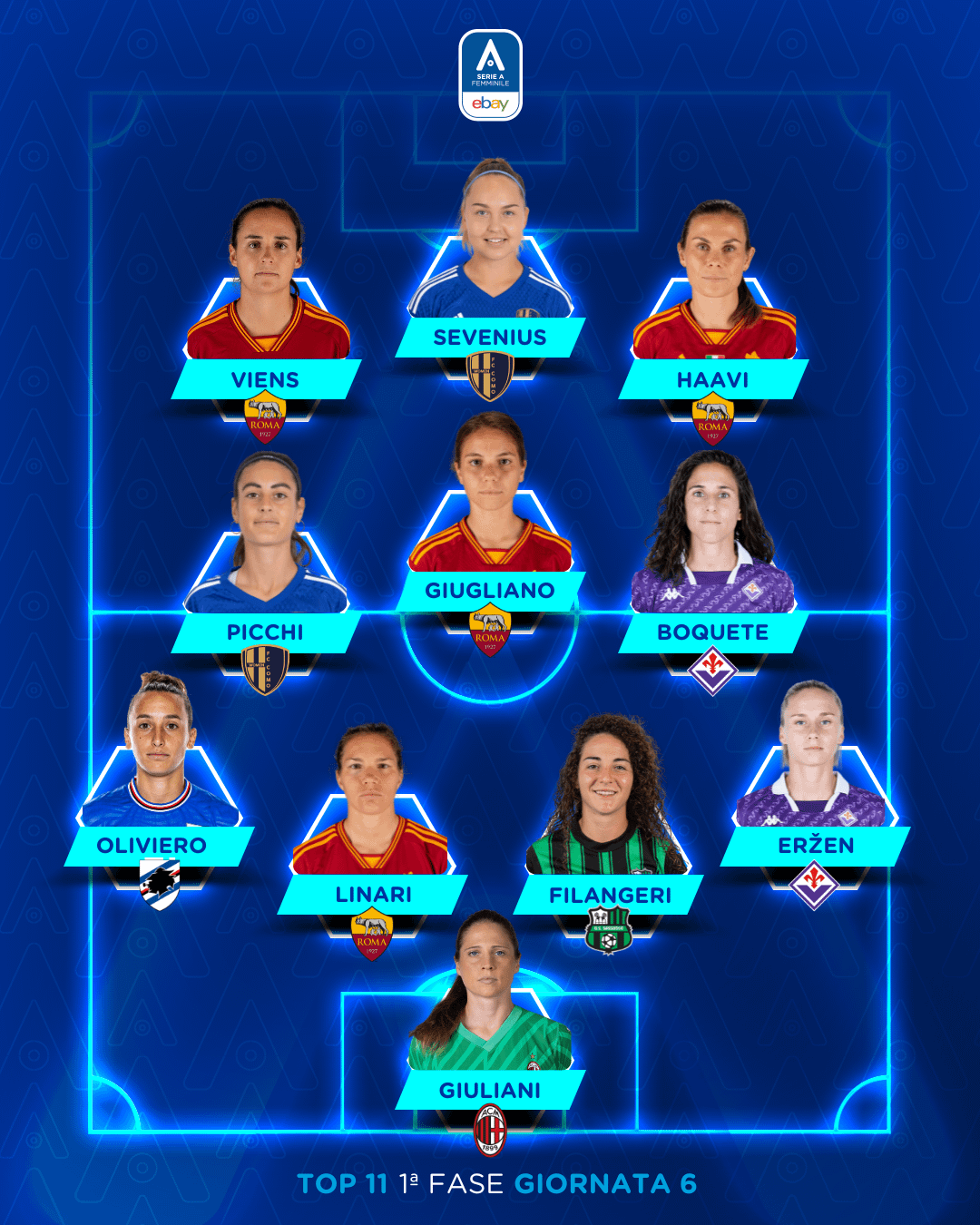 Forsaken-Link-5859 on November 7, 2023 3:42 pm Players with most apperances(3) in top11: Girelli,Berensteyn(Juventus), Linari,Gugliano(Roma)