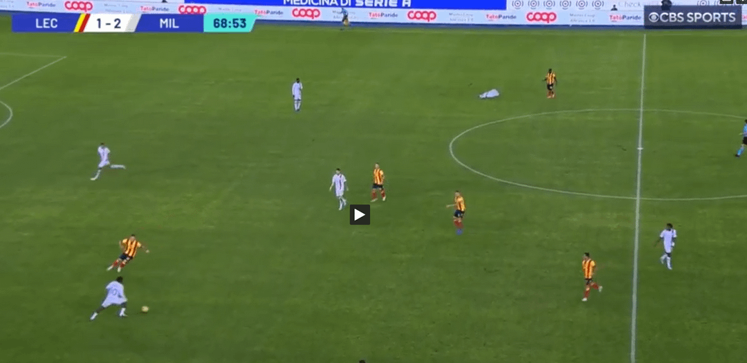 * 15 seconds between first and last picture and Pobega and Reijnders are not in the center circle. Actually Pobega enters it, but is followed by a Lecce player.